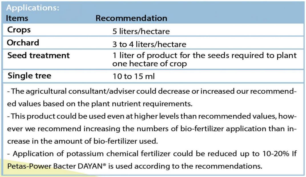 The microorganisms used in this product are highly salt and drought-tolerant microorganisms, hence they could survive and function in the poor, drought, and saline soil. Application of potassium chemical fertilizer could be reduced up to 20-30% If DAYAN Petas Bacter® is used according to the recommendations.
