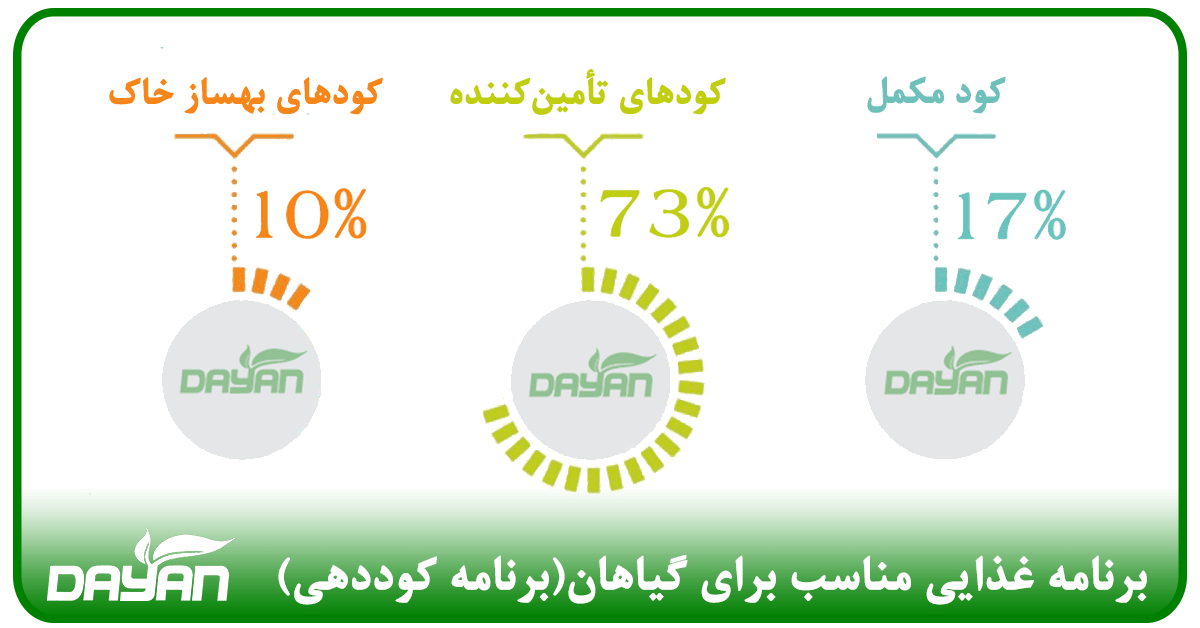 حال شرکت دایان همین برنامه غذایی را برای باغ و مزرعه شما بر اساس نوع گیاه، نوع و خصوصیات خاک، شرایط اقلیمی و آب و هوای منطقه، میزان و کیفیت آب آبیاری، امکانات کشاورز، سطح درآمدی و توان هزینهکرد کشاورز و سایر شرایط آماده میکند. در این برنامه غذایی کودهایی که شما به عنوان کشاورز نیاز است داخل مزرعه یا باغ استفاده کنید، زمان مصرف و شیوه درست آنها به صورت مرحله به مرحله توضیح داده شده است.